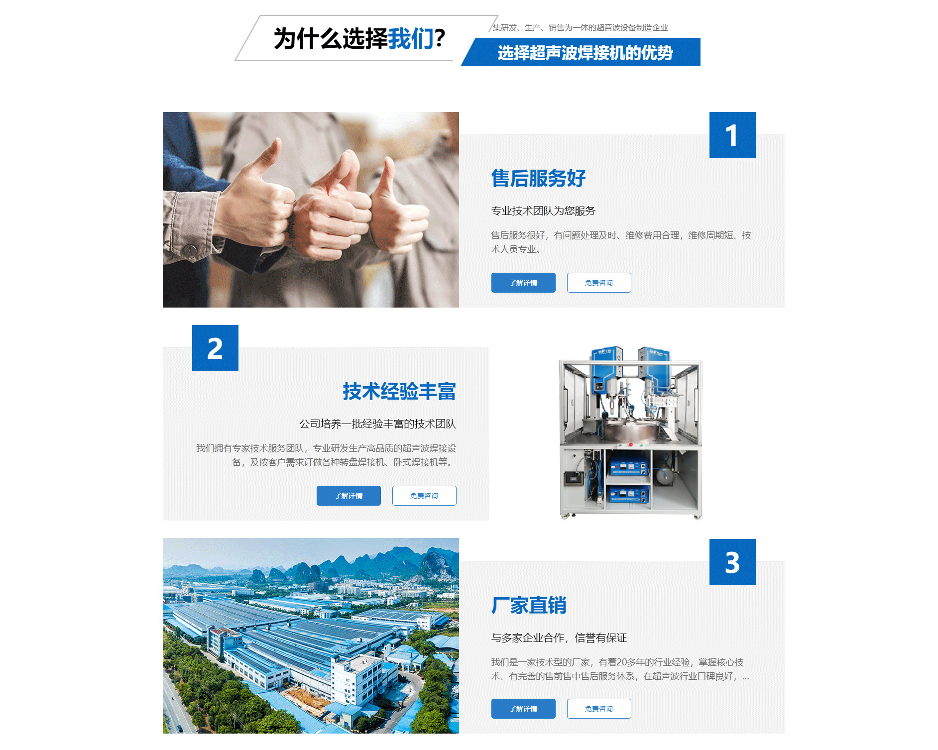 關(guān)于我們廈門勁榮機(jī)械設(shè)備有限公司是一家集研發(fā)、生產(chǎn)、銷售為一體的超音波設(shè)備制造企業(yè),主要產(chǎn)品包括多規(guī)格型號(hào)的超音波塑膠熔接機(jī)、熱板式塑料焊接機(jī)、多工位轉(zhuǎn)盤焊接機(jī)、振動(dòng)摩擦焊接機(jī)、旋轉(zhuǎn)式塑膠熔接機(jī)及配套的工裝夾具等。公司自2003年成立以來,一直致力于產(chǎn)品不斷完善中,并追求產(chǎn)品的精益求精,于2004年向國家商標(biāo)局注冊(cè)了“勁榮”牌商標(biāo),2009年榮獲廈門市商標(biāo)。 經(jīng)過多年的努力,公司已經(jīng)發(fā)展成為占地面積2000余平方米、擁有員工50余人的企業(yè)。公司一直將“品質(zhì)是企業(yè)發(fā)展的原動(dòng)力”作為經(jīng)營理念,嚴(yán)把質(zhì)量關(guān),建立了一整套有效的安全生產(chǎn)及管理模式,不僅贏得了同行的認(rèn)可,更取得了客戶的信賴,先后與九牧集團(tuán)、路達(dá)工業(yè)、建霖集團(tuán)、西伯電子、蒙發(fā)利實(shí)業(yè)、松霖科技、銥科集團(tuán)、科司特電子等公司建立了長期的合作關(guān)系。 面對(duì)已經(jīng)取得的成績(jī),我們不驕不滿,因?yàn)樯钪獦I(yè)績(jī)只能代表過去,只有靠良好的產(chǎn)品質(zhì)量和完善的售后服務(wù)才能在客戶中口碑相傳,在...